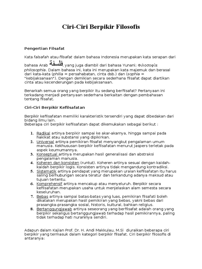 Ciri Ciri Berpikir Filosofis Pdf